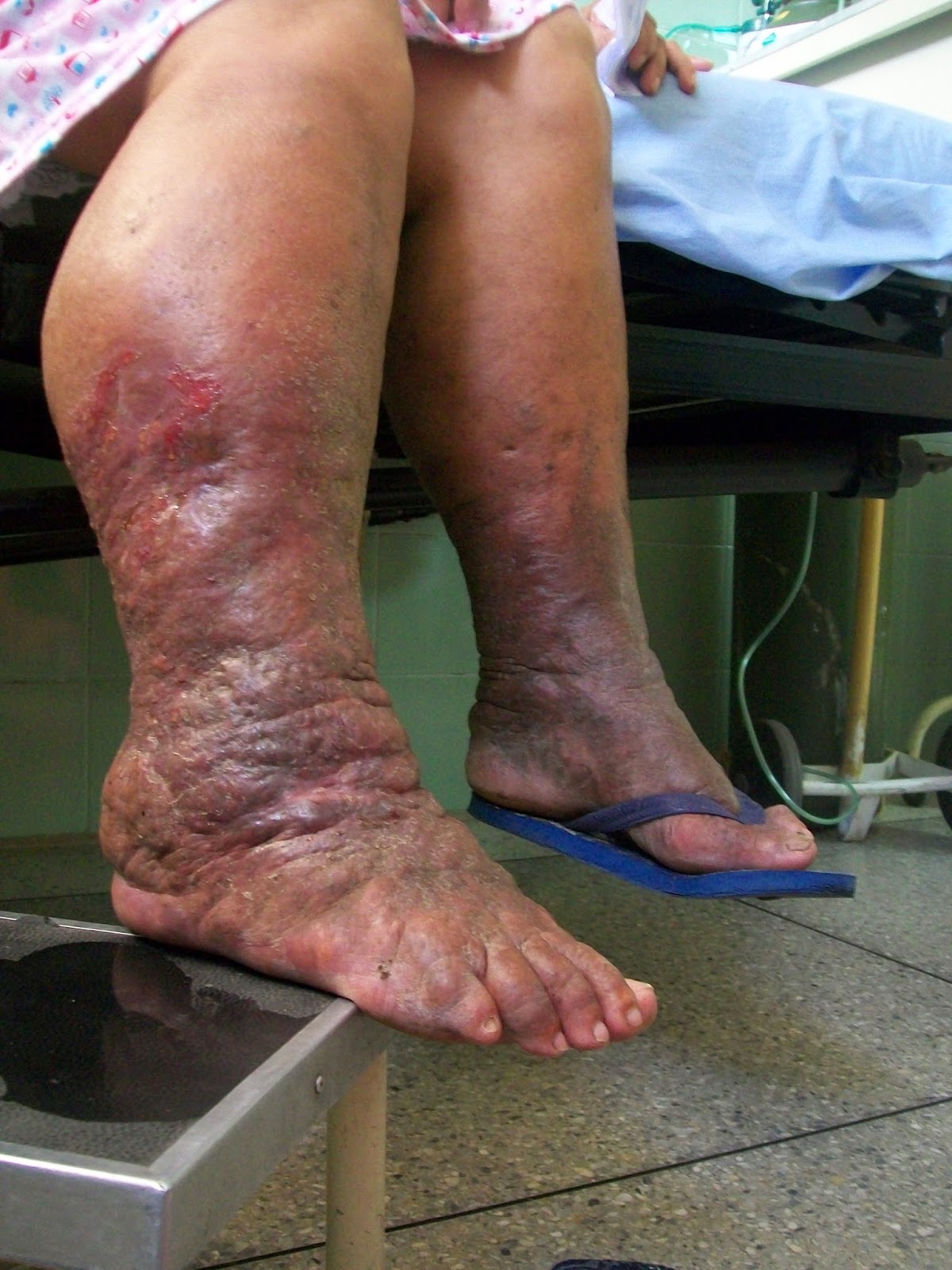 - Lymphedema- This fun-filled spectacle is the result of impaired lymph drainage, which causes swelling of the limbs, bacterial infections, and thickening of the skin (Ibid). When this occurs, the skin cracks, infection sets in, and out comes the bone saw.